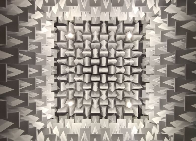 Samonośna konstrukcja w systemie suchej zabudowy posadowiona na wibroizolatorach. Pomieszczenie o podwyższonych standardach izolacyjności akustycznej wg wytycznych Inwestora