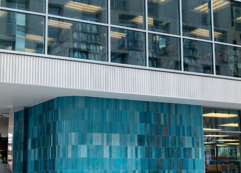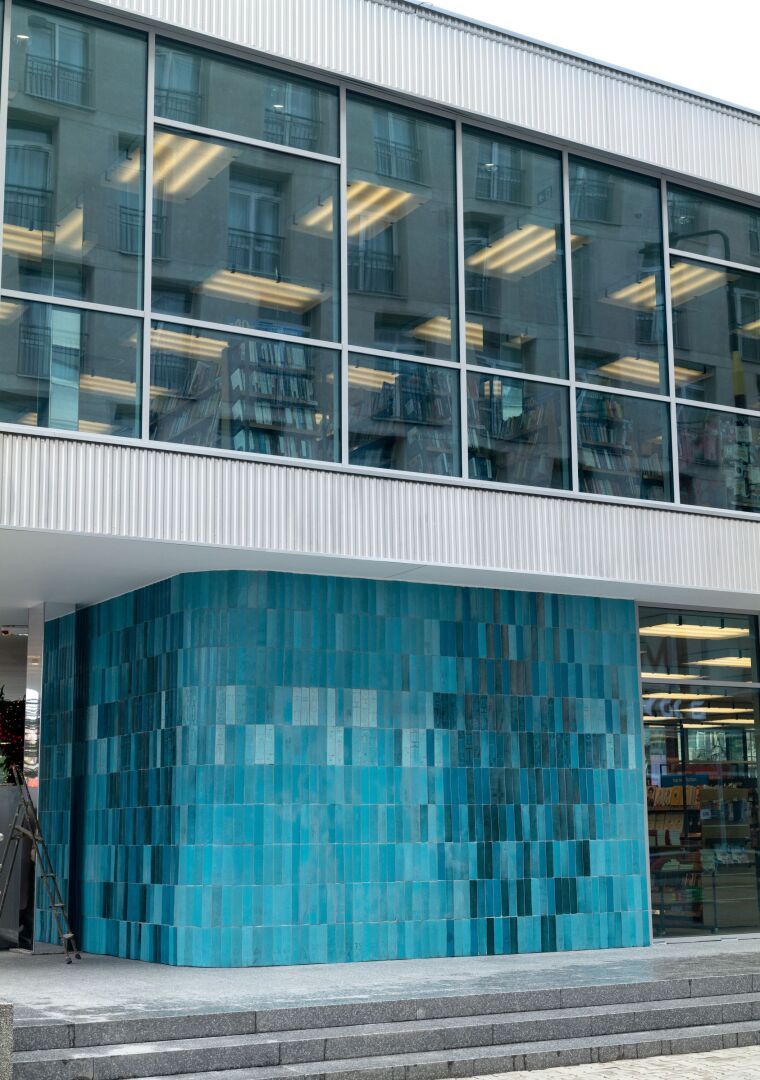 Elewacje przeszklone z dekoracyjnym zdobieniem płytkami ceramicznymi
